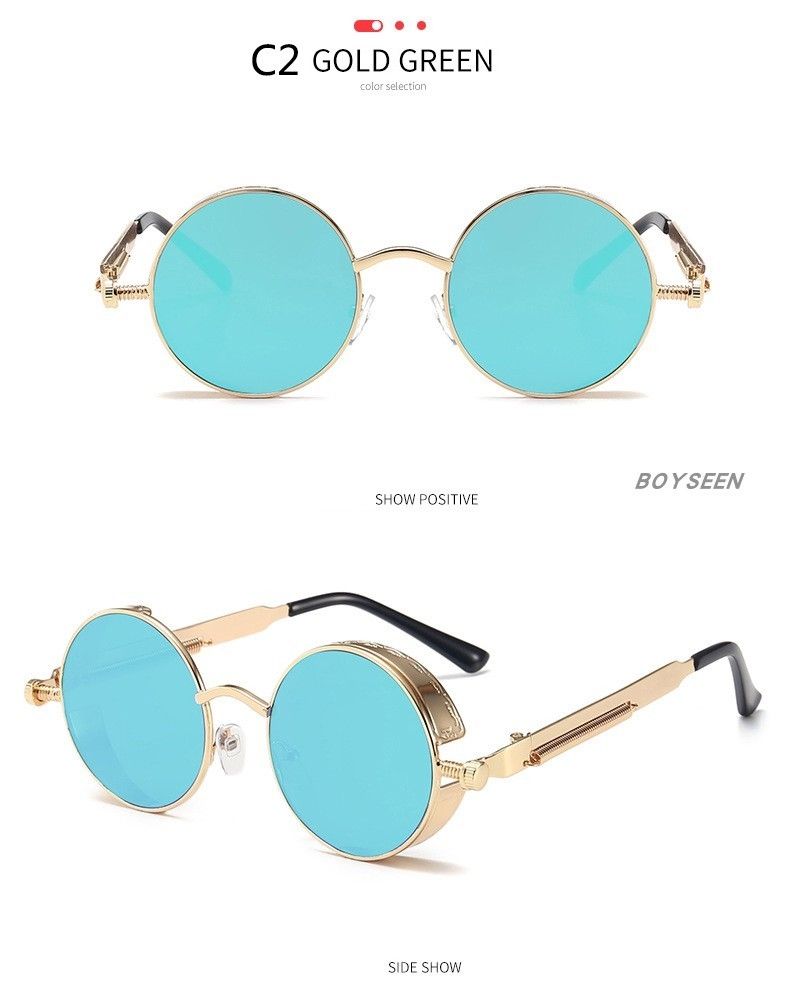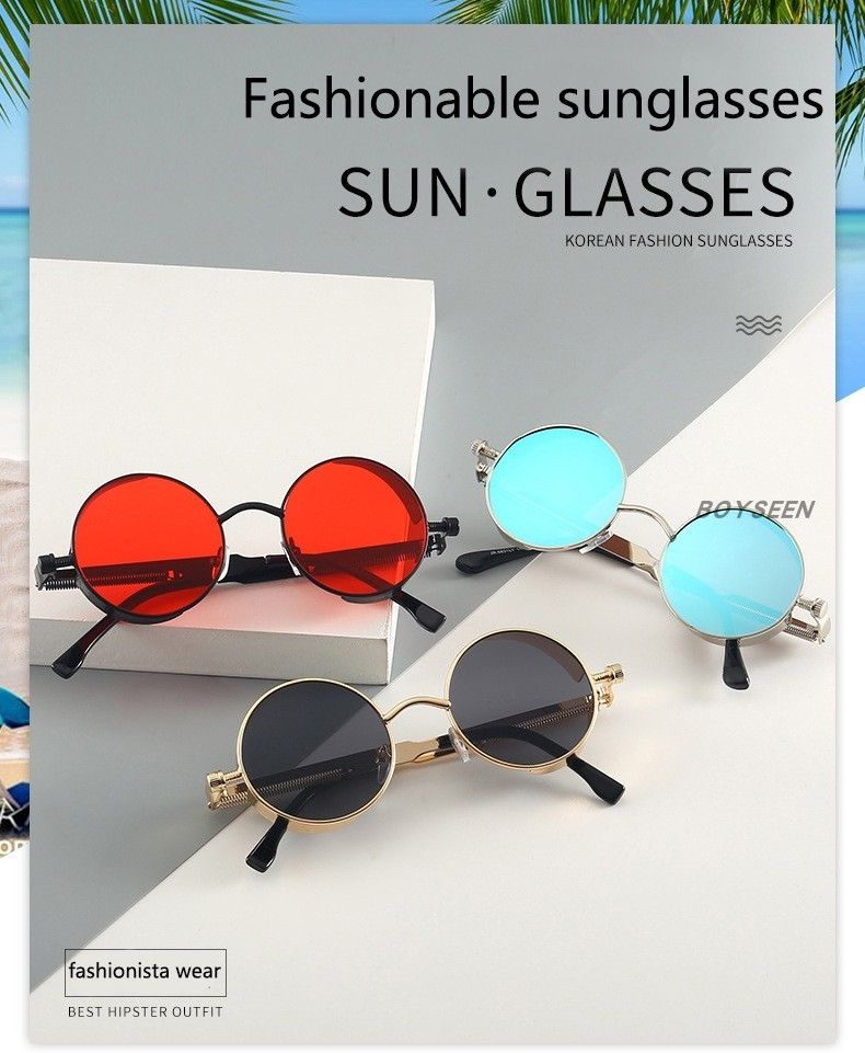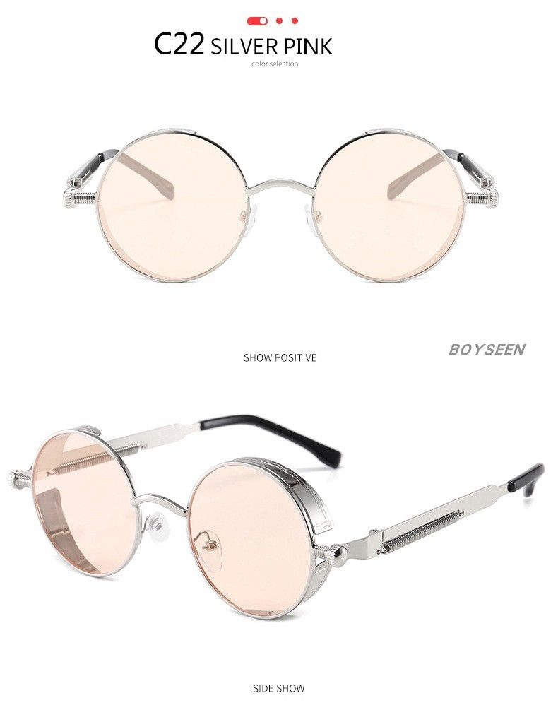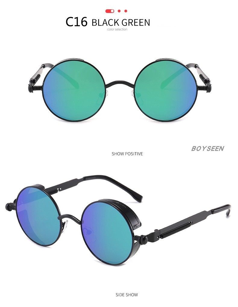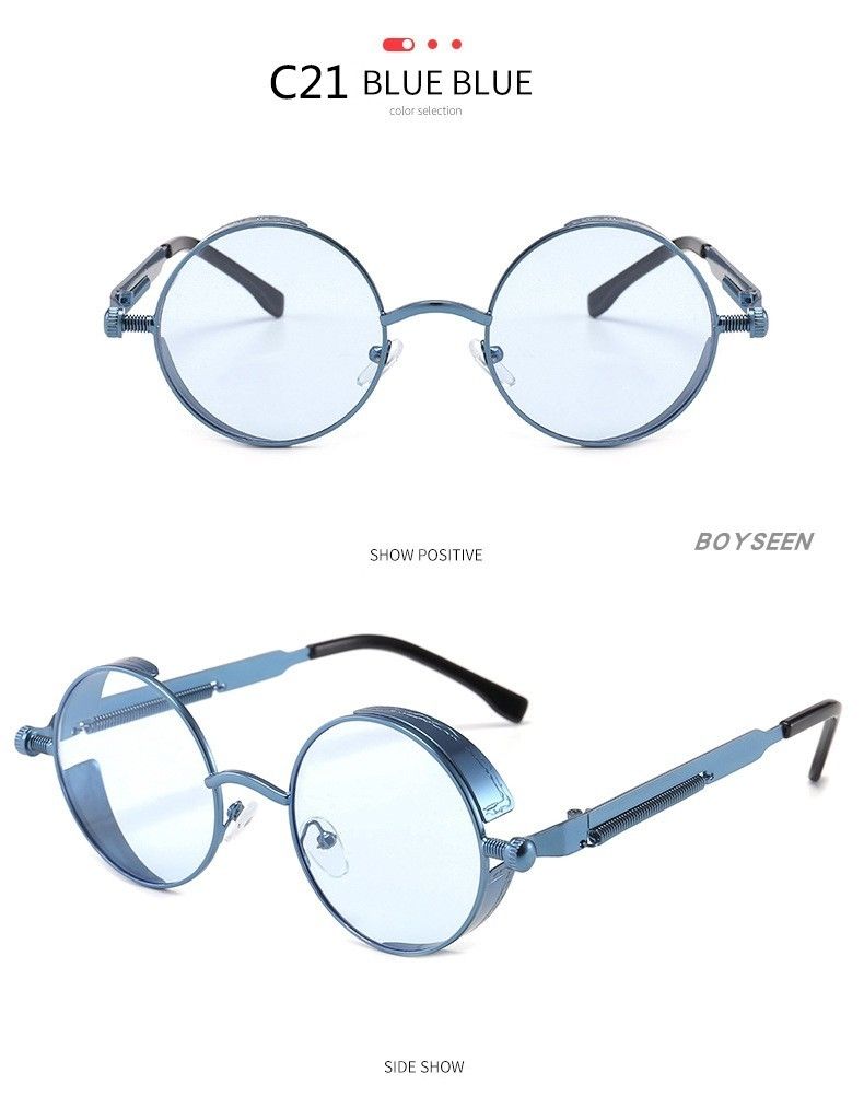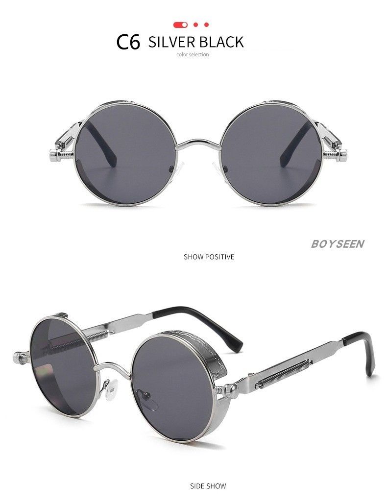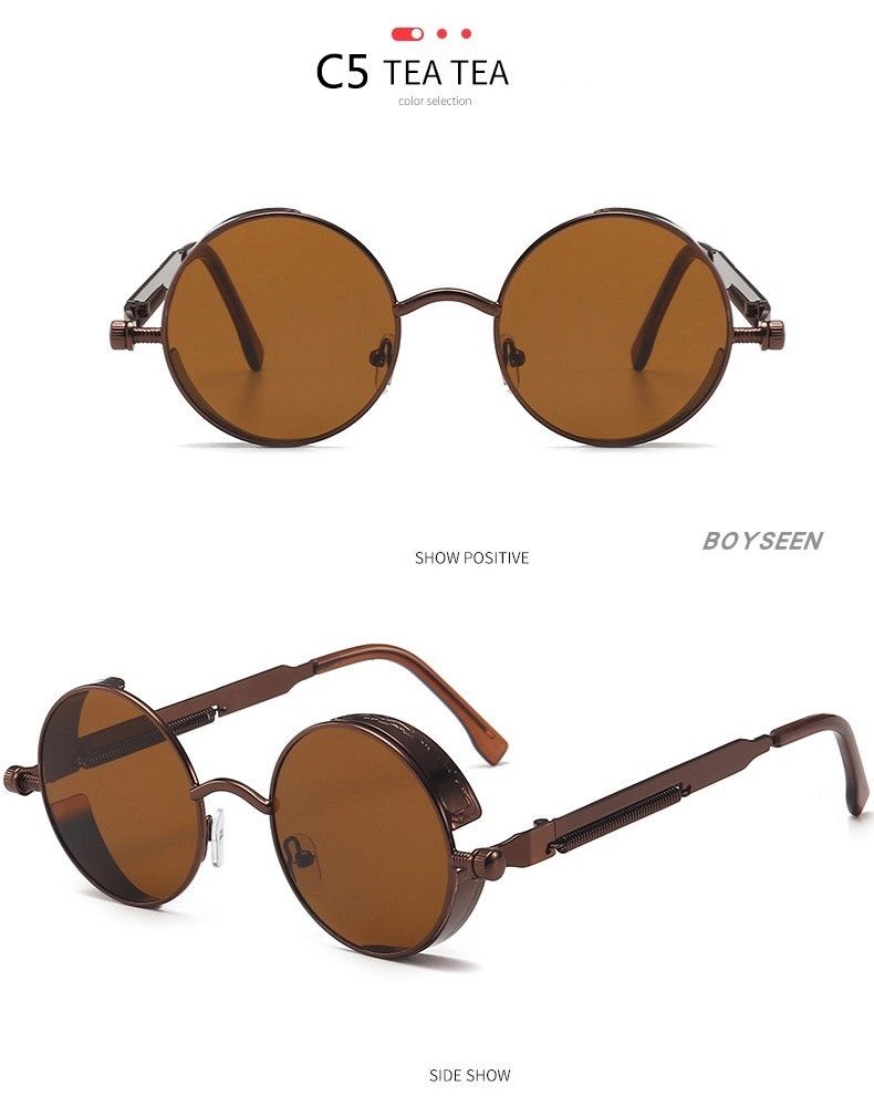 BOYSEEN New Punk Sunglasses Retro Metal Round Thick Frame Sunglasses Spring Temple