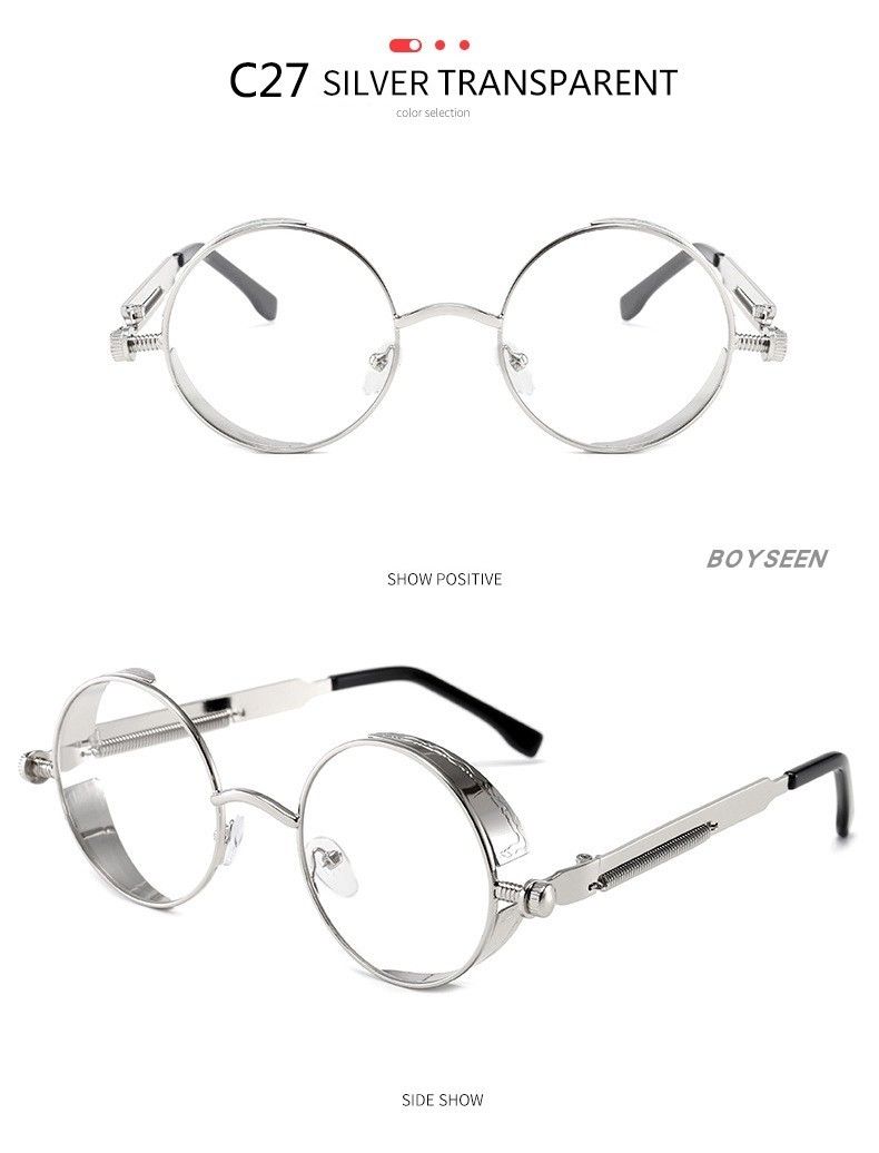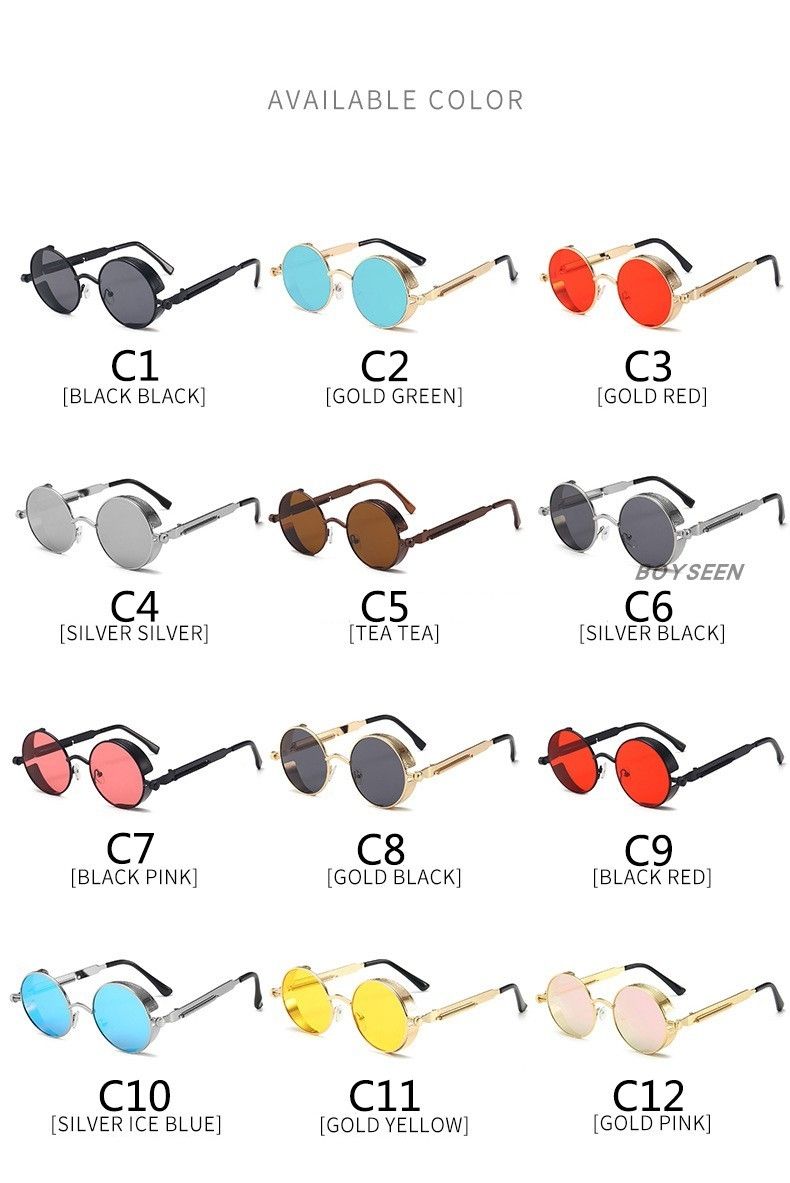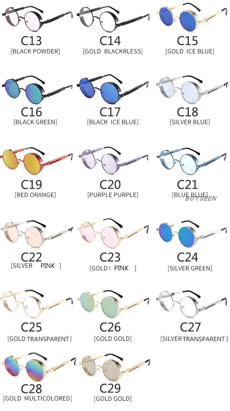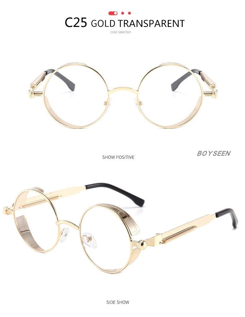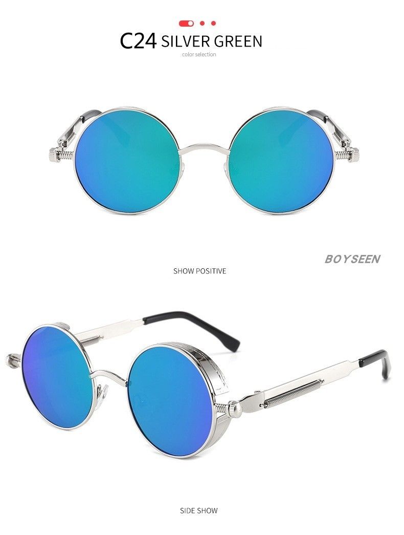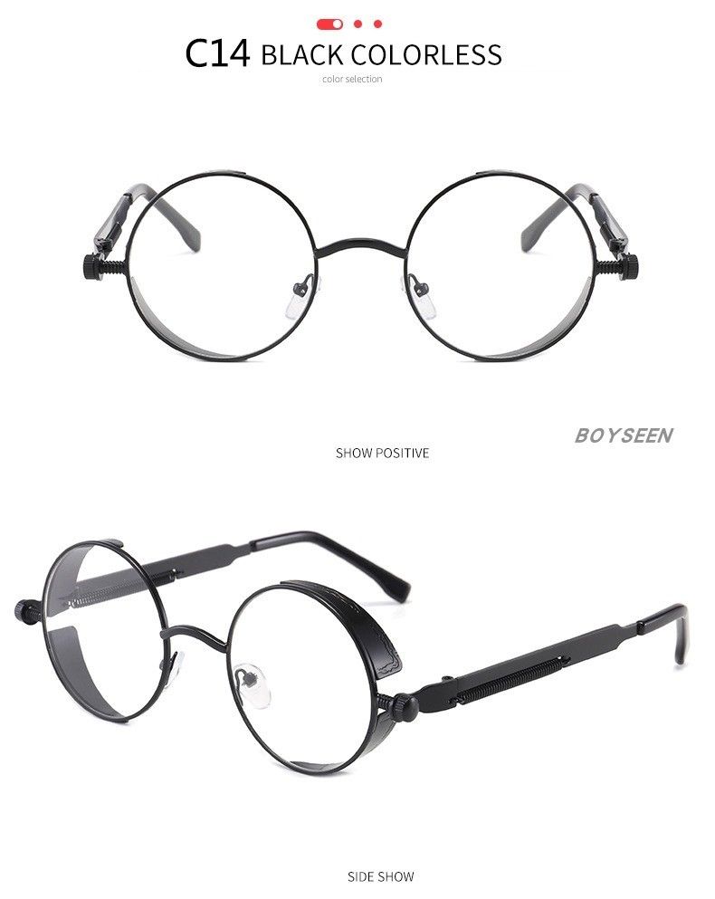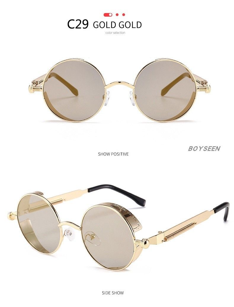 BOYSEEN New Punk Sunglasses Retro Metal Round Thick Frame Sunglasses Spring Temple
