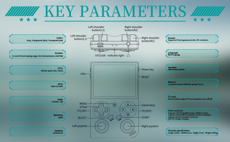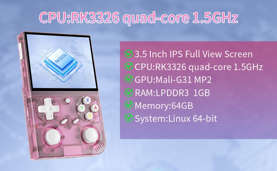 - 【Anbernic G350 Handheld Game Console】 This video game console uses the RK3326 chip, which can solve the problem of frame dropping in the game, run the game perfectly, and make your game screen smoother.