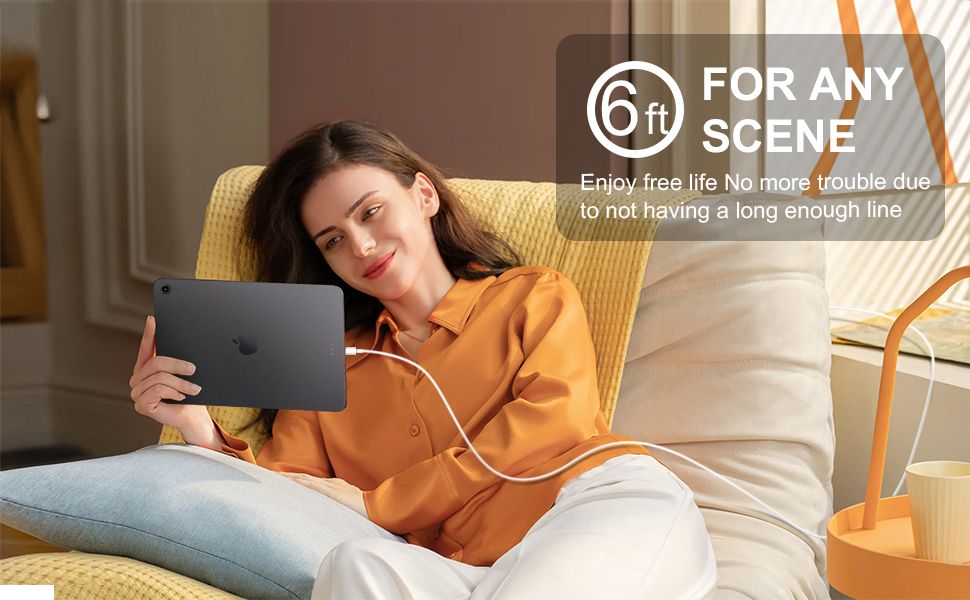 - 【Type C Charger】The Power Delivery Wall Charger for iPad iphone owns a built-in multi-protection system, avoiding over-voltage,over-charge,over-heat, etc. The smart chip including the MFi certified lightning cable match the current required by the device automatically, charges your iPhone/iPad device fast, safely, and steadily. Tangle-free 6 Feet length is convenient for usage while charging and sync at home/office/travel in bed, hotel rooms, and more.