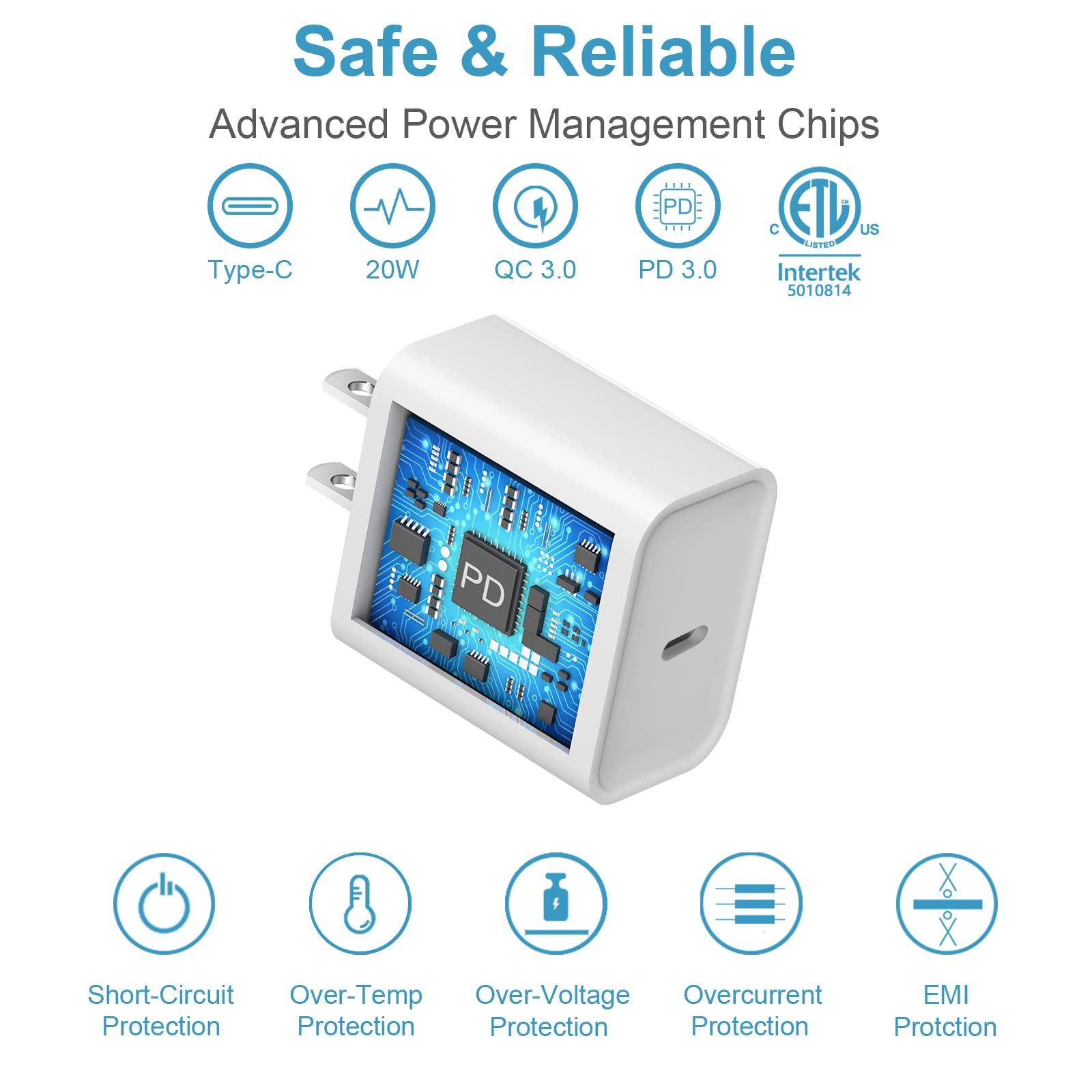 - 【iPhone 15 Charger】With the MFi Chip, the USB-C cord equips automatic chip recognition function, full support with iOS versions.20W USB-C Charger Offers Multiple Safeguards Automatically. Multi-Charging Protection Keeps Your Device Safe From Over-Current Over-Voltage Over- Heating & Short-Circuiting.