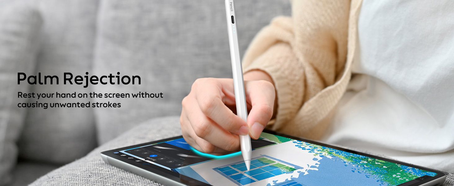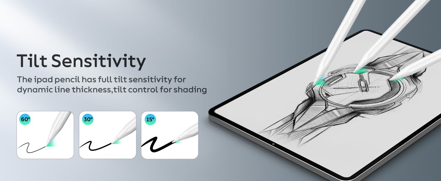 - 【Support Palm Rejection & Tilt Sensitivity】No need to wear anti-friction gloves as you can rest your hand on the screen without worrying about accidental touches. The tilt-sensing technology allows you to draw lines of different thicknesses on the screen based on the angle of the iPad pencil. The combination of the two vital functions makes our writing and drawing more relaxed and free.