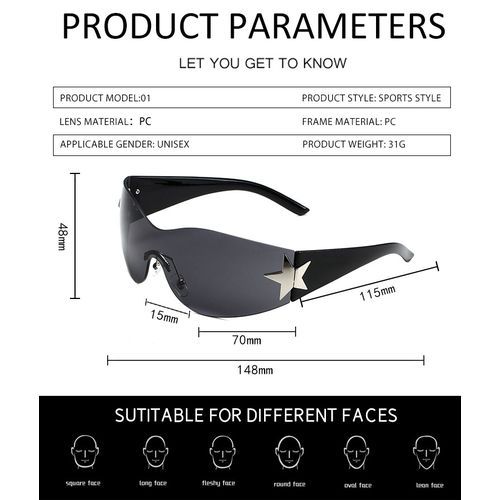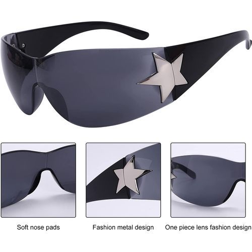 - Y2K Sunglasses: These are typical Y2k glasses with huge all-in-one lenses that wrap around the eyes in all directions. Protective wraparound sunglasses from the 2000s are very fashionable and a must-have accessory for Y2k. Comfortable to wear all day, indoors, outdoors, year-round. Fashion gift for women! Take an extra one.